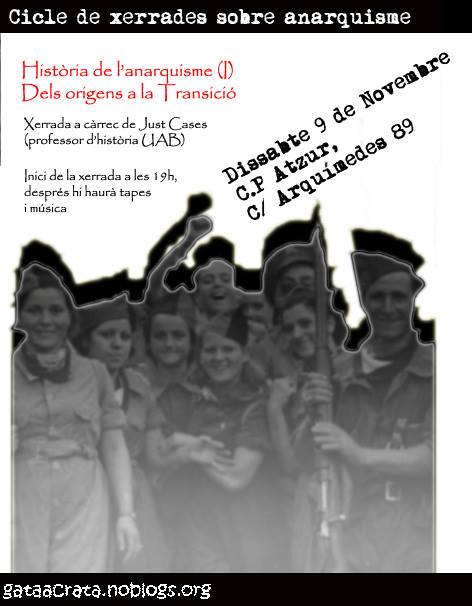 Comencem amb un cicle de xerrades sobre anarquisme, que començarà al Casal Popular Atzur amb el professor d’història de la UAB Just Cases, també militant de la CNT-AIT de Terrassa.