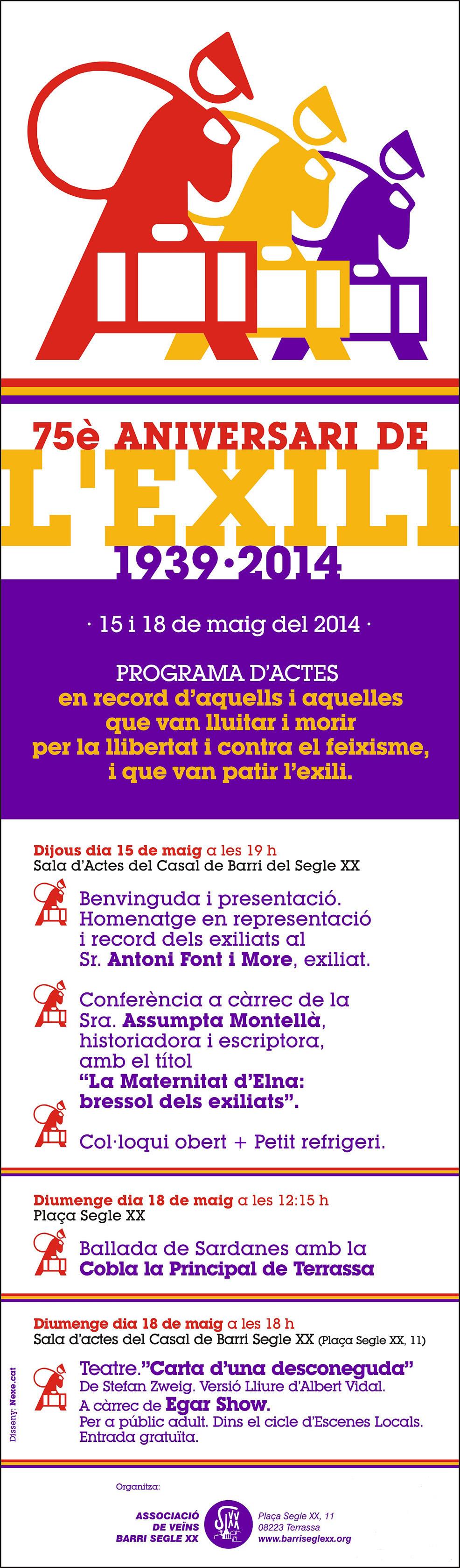 El proper 15 de maig a les 19 h a la Sala d’Actes del Casal de Barri del Segle XX (Plaça Segle XX, 11) en homenatge i memòria dels exiliats i en representació d’ells, el nostre company Antoni Font rebrà un petit homenatge i reconeixement. Després l’Assumpta Montellà, periodista i historiadora, farà una xerrada col·loqui.