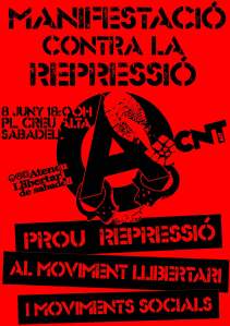 [Dissabte 8 de juny 18h Pl.Creu Alta, Sabadell] Manifestació contra la repressió al moviment llibertari i als moviments socials
